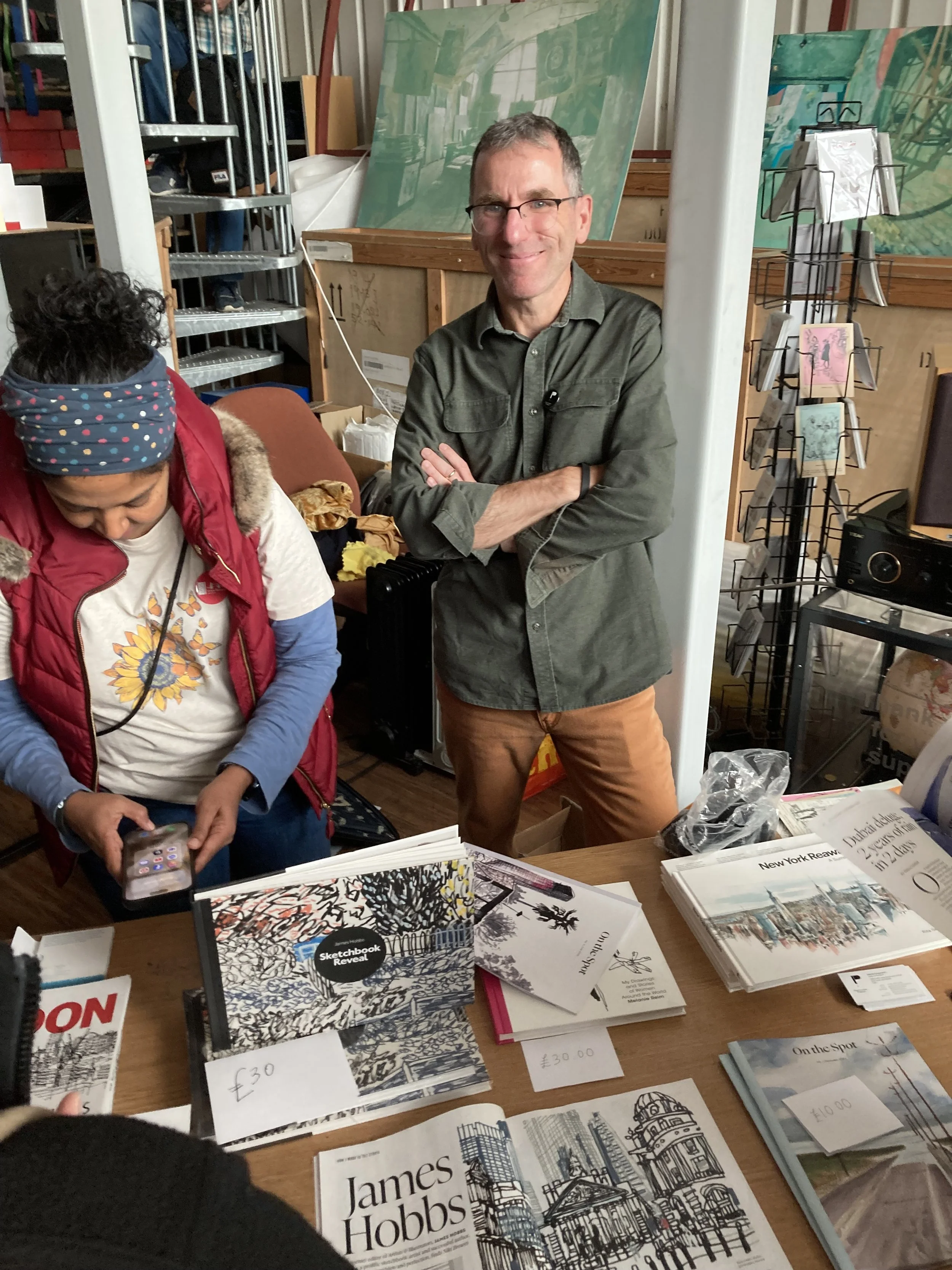 The London launch of Sketchbook Reveal took place at the Topolski Studio, in an arch under Hungerford Bridge on the South Bank on 4 October 2025. He and I talked about the book and how it came about in front of a packed audience, before Lucien Topolski displayed works by his grandfather Feliks, and the Sketcher Press pop-up shop stayed open through the afternoon.